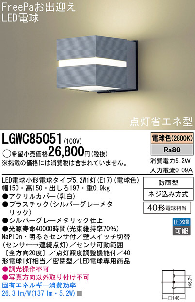 Panasonic LED ¥¢¥¦¥È¥É¥¢ LGWC85051