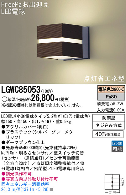Panasonic LED ¥¢¥¦¥È¥É¥¢ LGWC85053