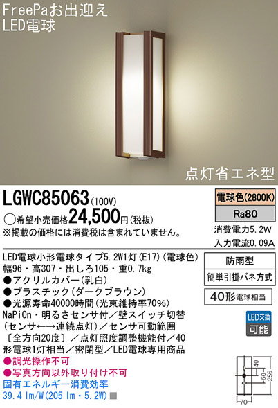 Panasonic LED ¥¢¥¦¥È¥É¥¢ LGWC85063