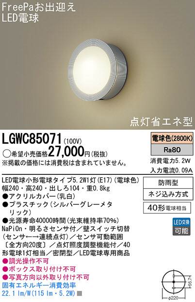 Panasonic LED ¥¢¥¦¥È¥É¥¢ LGWC85071
