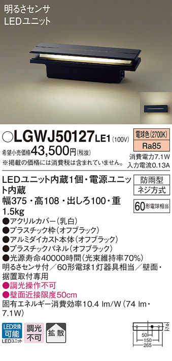 Panasonic LED ¥¨¥¯¥¹¥Æ¥ê¥¢¡¦¥¢¥¦¥È¥É¥¢ LGWJ50127LE1