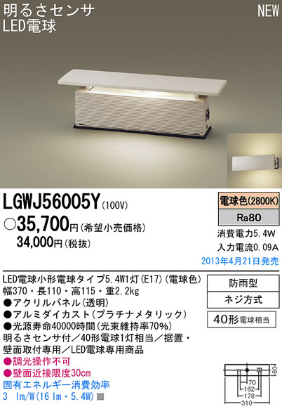 Panasonic LED ¥¢¥¦¥È¥É¥¢ LGWJ56005Y
