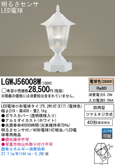 Panasonic LED ¥¢¥¦¥È¥É¥¢ LGWJ56008W