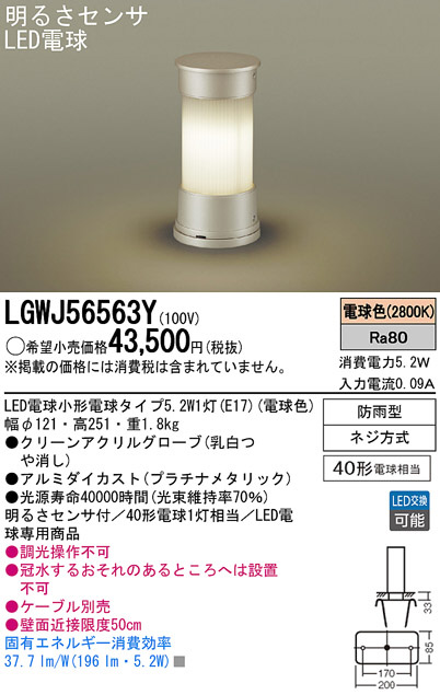 Panasonic LED ¥¨¥¯¥¹¥Æ¥ê¥¢¡¦¥¢¥¦¥È¥É¥¢ LGWJ56563Y