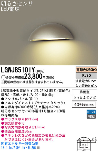 Panasonic LED ¥¨¥¯¥¹¥Æ¥ê¥¢¡¦¥¢¥¦¥È¥É¥¢ LGWJ85101Y