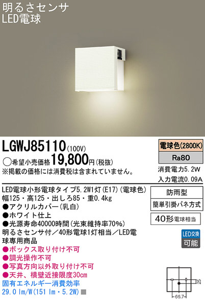 Panasonic LED ¥¢¥¦¥È¥É¥¢ LGWJ85110
