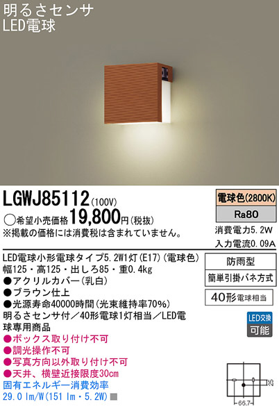 Panasonic LED ¥¢¥¦¥È¥É¥¢ LGWJ85112
