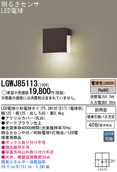 Panasonic LED ¥¢¥¦¥È¥É¥¢ LGWJ85113