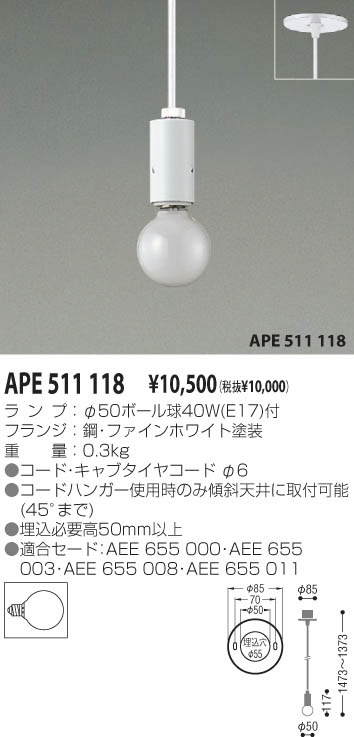 Çò40W|¥é¥ó¥×¡§¦Õ50¥Ü¡¼¥ëµå40W(E17)ÉÕ|¥Õ¥é¥ó¥¸¡§¹Ý¡¦¥Õ¥¡¥¤¥ó¥Û¥ï¥¤¥ÈÅÉÁõ|¡ü¹â-117 Éý-¦Õ50 Á´Ä¹-1473¡Á1373mm ½Å-0.3kg|¡ü¥³¡¼¥É¡¦¥¥ã¥Ö¥¿¥¤¥ä¥³¡¼¥É ¦Õ6|¡ü¥³¡¼¥É¥Ï¥ó¥¬¡¼»ÈÍÑ»þ¤Î¤ß·¹¼ÐÅ·°æ¤Ë¼èÉÕ²Äǽ(45¡ë¤Þ¤Ç)|¡üËä¹þɬÍ×¹â50mm°Ê¾å|¡üŬ¹ç¥»¡¼¥É¡§AEE 655 000¡¦AEE 655 003¡¦AEE 655 008¡¦AEE 655 011