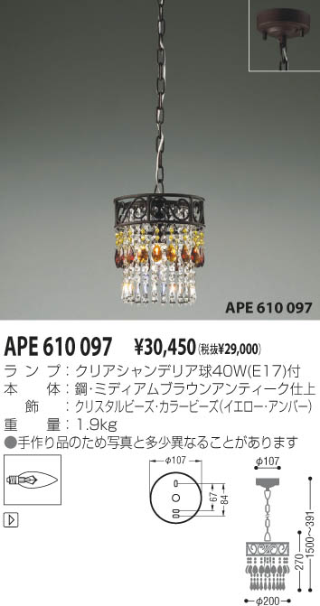 Çò40W|¥é¥ó¥×¡§¥¯¥ê¥¢¥·¥ã¥ó¥Ç¥ê¥¢µå40W(E17)ÉÕ|ËÜÂΡ§¹Ý¡¦¥ß¥Ç¥£¥¢¥à¥Ö¥é¥¦¥ó¥¢¥ó¥Æ¥£¡¼¥¯»Å¾å|¾þ¡§¥¯¥ê¥¹¥¿¥ë¥Ó¡¼¥º¡¦¥«¥é¡¼¥Ó¡¼¥º¡Ê¥¤¥¨¥í¡¼¡¦¥¢¥ó¥Ð¡¼¡Ë|¡ü¹â-270 Éý-¦Õ200 Á´Ä¹-1500¡Á391mm ½Å-1.9kg|¡ü¼êºî¤êÉʤΤ¿¤á¼Ì¿¿¤È¿¾¯°Û¤Ê¤ë¤³¤È¤¬¤¢¤ê¤Þ¤¹
