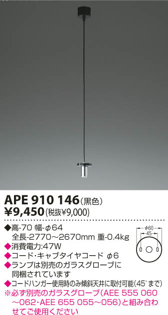 ¢¡¥Õ¥é¥ó¥¸¡§¹õ¿§|¢¡¹â-70 Éý-¦Õ64 Á´Ä¹-2770¡Á2670mm ½Å-0.4kg|¢¡¥³¡¼¥É¡¦¥¥ã¥Ö¥¿¥¤¥ä¥³¡¼¥É ¦Õ6|¢¡¥é¥ó¥×¤ÏÊÌÇä¤Î¥¬¥é¥¹¥°¥í¡¼¥Ö¤ËƱº¤µ¤ì¤Æ¤¤¤Þ¤¹|¢¡¥³¡¼¥É¥Ï¥ó¥¬¡¼»ÈÍÑ»þ¤Î¤ß·¹¼ÐÅ·°æ¤Ë¼èÉÕ²Äǽ(45¡ë¤Þ¤Ç)|¢¨É¬¤ºÊÌÇä¤Î¥¬¥é¥¹¥°¥í¡¼¥Ö¡ÊAEE 555 057¡Á062¡¦AEE 655 047¡Á051¡¦AEE 655 055¡Á057¡Ë¤ÈÁȤ߹ç¤ï¤»¤Æ¤´»ÈÍѤ¯¤À¤µ¤¤|¾ÃÈñÅÅÎÏ¡§47W