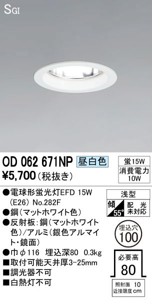 ODELIC ¥ª¡¼¥Ç¥ê¥Ã¥¯ ¥À¥¦¥ó¥é¥¤¥È OD062671NP