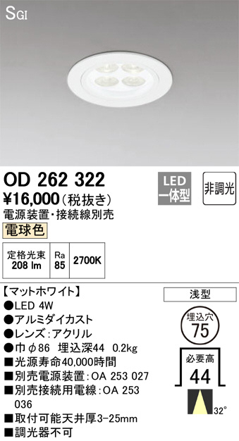 ODELIC ¥ª¡¼¥Ç¥ê¥Ã¥¯ ¥À¥¦¥ó¥é¥¤¥È OD262322