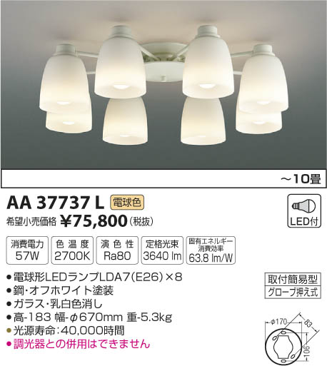 ¥³¥¤¥º¥ß¾ÈÌÀ KOIZUMI ¥·¥ã¥ó¥Ç¥ê¥¢ LED¡ÊÅŵ忧¡Ë AA37737L