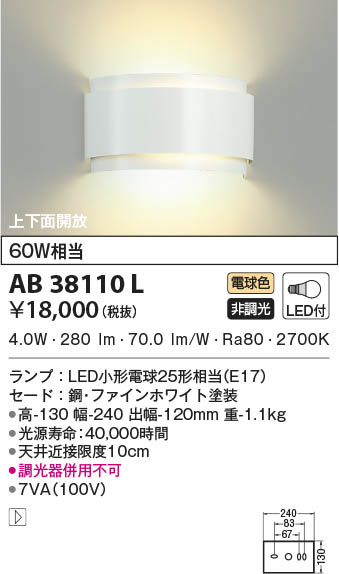 KOIZUMI ¥³¥¤¥º¥ß¾ÈÌÀ ¥Ö¥é¥±¥Ã¥È AB38110L
