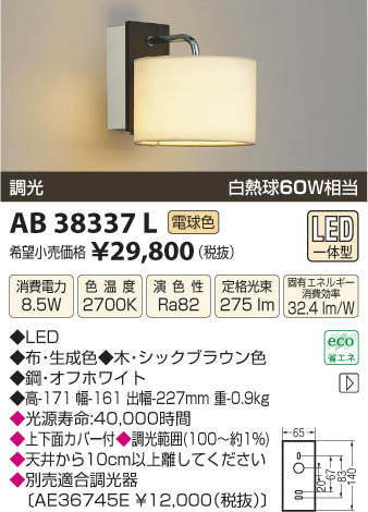¥³¥¤¥º¥ß¾ÈÌÀ KOIZUMI ¥Ö¥é¥±¥Ã¥È LED AB38337L