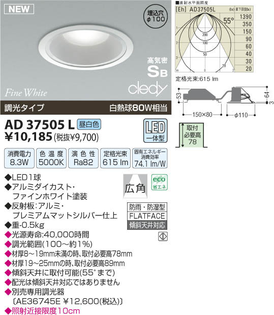¥³¥¤¥º¥ß¾ÈÌÀ KOIZUMI LED¹âµ¤Ì©¥À¥¦¥ó¥é¥¤¥È AD37505L