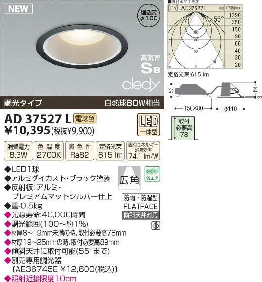 ¥³¥¤¥º¥ß¾ÈÌÀ KOIZUMI LED¹âµ¤Ì©¥À¥¦¥ó¥é¥¤¥È AD37527L