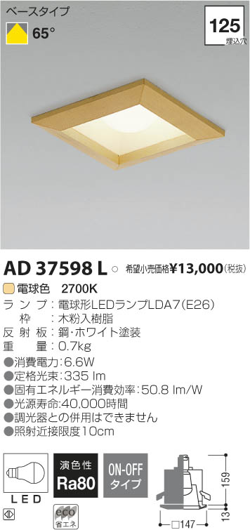 ¥³¥¤¥º¥ß¾ÈÌÀ KOIZUMI LED¥À¥¦¥ó¥é¥¤¥È AD37598L