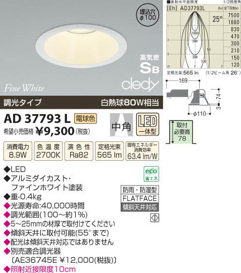 ¥³¥¤¥º¥ß¾ÈÌÀ KOIZUMI LED¹âµ¤Ì©¥À¥¦¥ó¥é¥¤¥È AD37793L