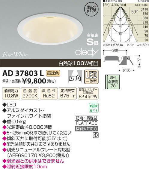 ¥³¥¤¥º¥ß¾ÈÌÀ KOIZUMI LED¹âµ¤Ì©¥À¥¦¥ó¥é¥¤¥È AD37803L