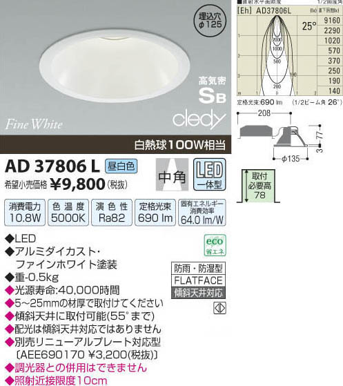 ¥³¥¤¥º¥ß¾ÈÌÀ KOIZUMI LED¹âµ¤Ì©¥À¥¦¥ó¥é¥¤¥È AD37806L