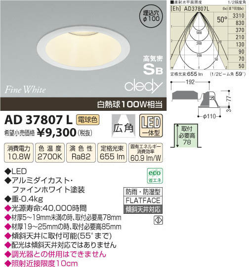 ¥³¥¤¥º¥ß¾ÈÌÀ KOIZUMI LED¹âµ¤Ì©¥À¥¦¥ó¥é¥¤¥È AD37807L
