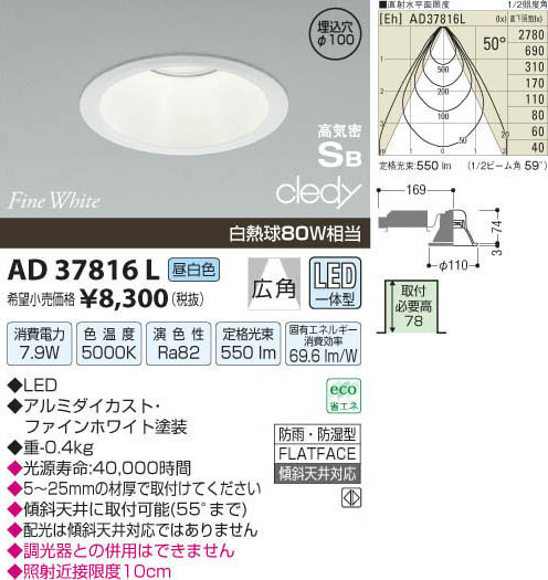 ¥³¥¤¥º¥ß¾ÈÌÀ KOIZUMI LED¹âµ¤Ì©¥À¥¦¥ó¥é¥¤¥È AD37816L