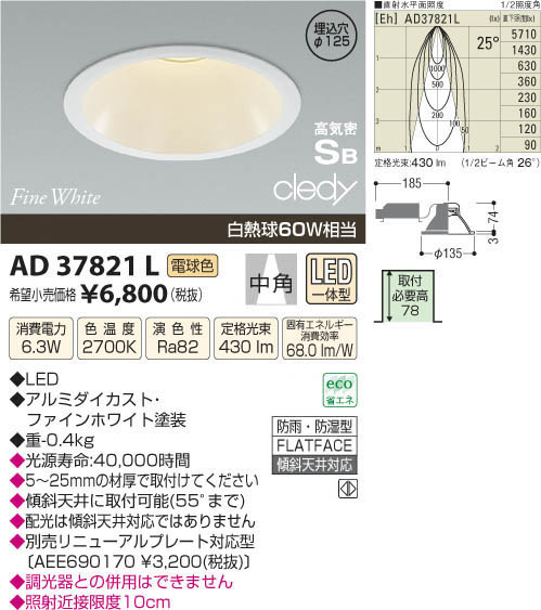 ¥³¥¤¥º¥ß¾ÈÌÀ KOIZUMI LED¹âµ¤Ì©¥À¥¦¥ó¥é¥¤¥È AD37821L