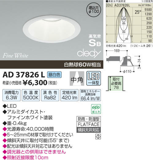 ¥³¥¤¥º¥ß¾ÈÌÀ KOIZUMI LED¹âµ¤Ì©¥À¥¦¥ó¥é¥¤¥È AD37826L