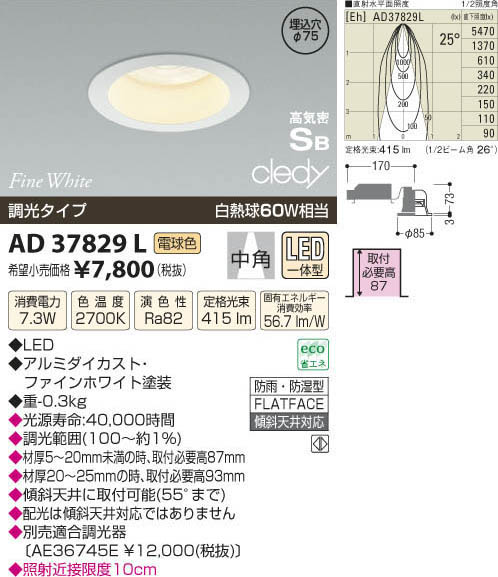 ¥³¥¤¥º¥ß¾ÈÌÀ KOIZUMI LED¹âµ¤Ì©¥À¥¦¥ó¥é¥¤¥È AD37829L