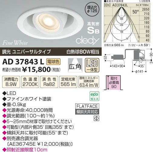 ¥³¥¤¥º¥ß¾ÈÌÀ KOIZUMI LED¹âµ¤Ì©¥À¥¦¥ó¥é¥¤¥È AD37843L