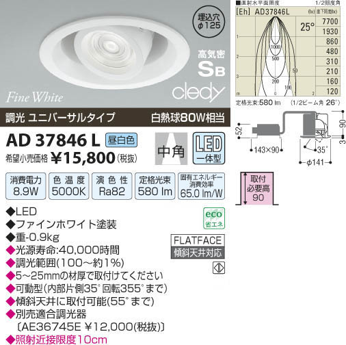 ¥³¥¤¥º¥ß¾ÈÌÀ KOIZUMI LED¹âµ¤Ì©¥À¥¦¥ó¥é¥¤¥È AD37846L