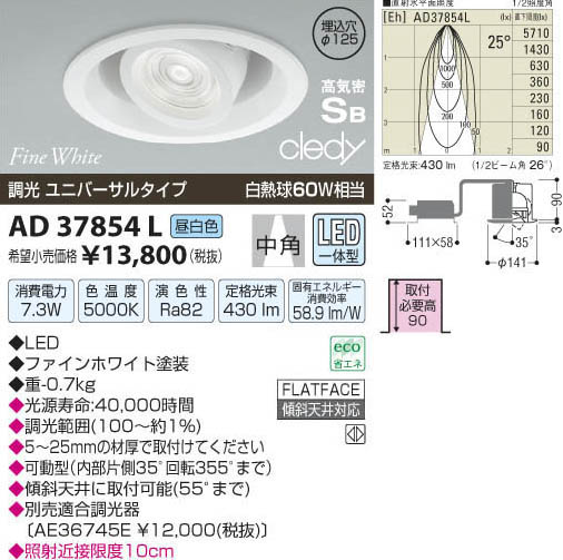¥³¥¤¥º¥ß¾ÈÌÀ KOIZUMI LED¹âµ¤Ì©¥À¥¦¥ó¥é¥¤¥È AD37854L