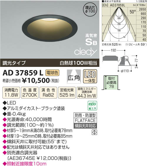 ¥³¥¤¥º¥ß¾ÈÌÀ KOIZUMI LED¹âµ¤Ì©¥À¥¦¥ó¥é¥¤¥È AD37859L