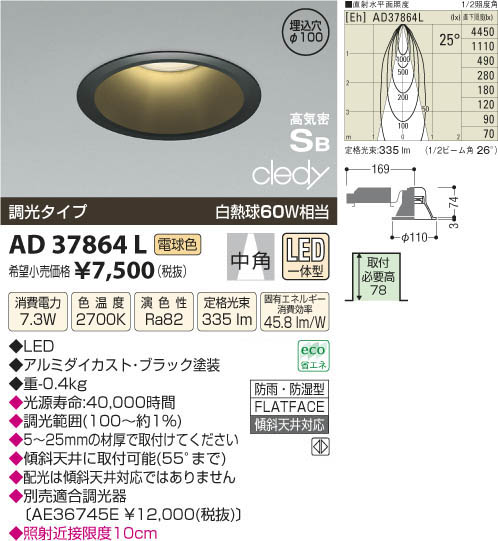 ¥³¥¤¥º¥ß¾ÈÌÀ KOIZUMI LED¹âµ¤Ì©¥À¥¦¥ó¥é¥¤¥È AD37864L