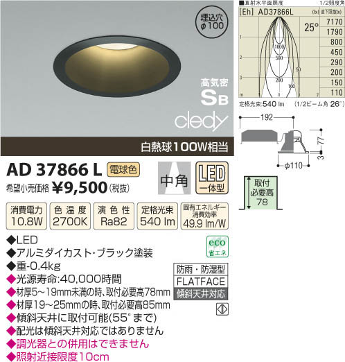 ¥³¥¤¥º¥ß¾ÈÌÀ KOIZUMI LED¹âµ¤Ì©¥À¥¦¥ó¥é¥¤¥È AD37866L