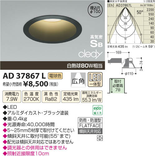¥³¥¤¥º¥ß¾ÈÌÀ KOIZUMI LED¹âµ¤Ì©¥À¥¦¥ó¥é¥¤¥È AD37867L