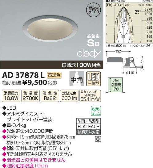 ¥³¥¤¥º¥ß¾ÈÌÀ KOIZUMI LED¹âµ¤Ì©¥À¥¦¥ó¥é¥¤¥È AD37878L