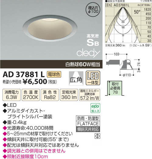 ¥³¥¤¥º¥ß¾ÈÌÀ KOIZUMI LED¹âµ¤Ì©¥À¥¦¥ó¥é¥¤¥È AD37881L