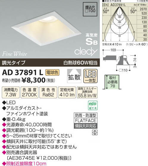 ¥³¥¤¥º¥ß¾ÈÌÀ KOIZUMI LED¹âµ¤Ì©¥À¥¦¥ó¥é¥¤¥È AD37891L