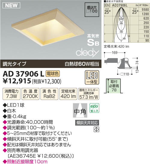 ¥³¥¤¥º¥ß¾ÈÌÀ KOIZUMI LED¹âµ¤Ì©¥À¥¦¥ó¥é¥¤¥È AD37906L
