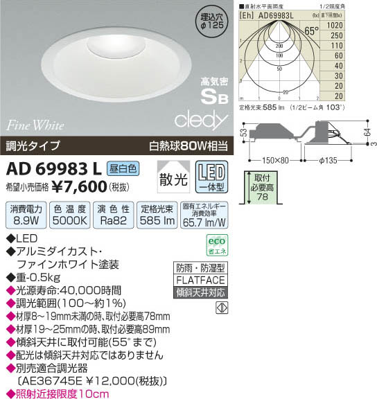 ¥³¥¤¥º¥ß¾ÈÌÀ KOIZUMI LED¹âµ¤Ì©¥À¥¦¥ó¥é¥¤¥È AD69983L