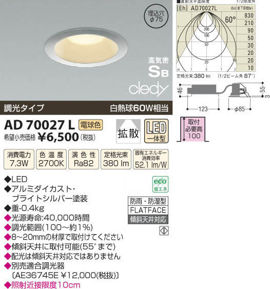 ¥³¥¤¥º¥ß¾ÈÌÀ KOIZUMI LED¹âµ¤Ì©¥À¥¦¥ó¥é¥¤¥È AD70027L