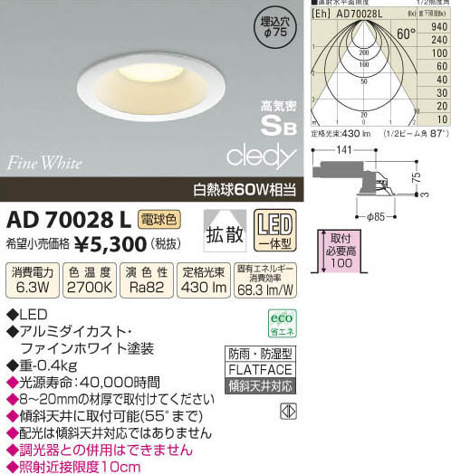 ¥³¥¤¥º¥ß¾ÈÌÀ KOIZUMI LED¹âµ¤Ì©¥À¥¦¥ó¥é¥¤¥È AD70028L
