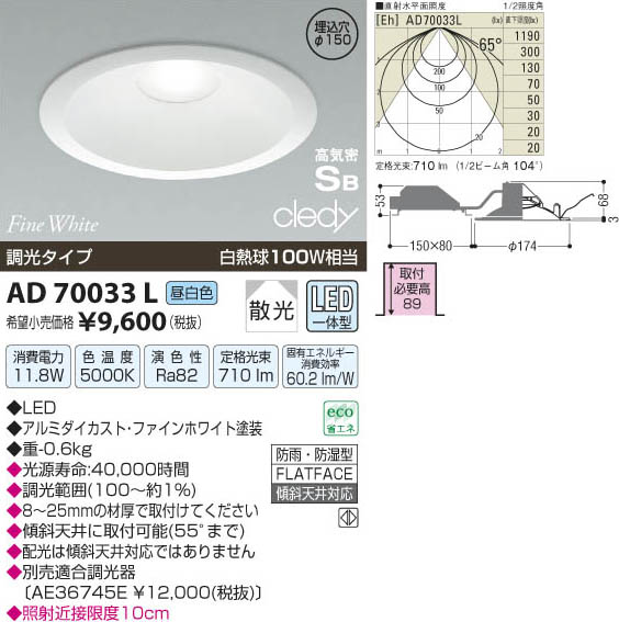 ¥³¥¤¥º¥ß¾ÈÌÀ KOIZUMI LED¹âµ¤Ì©¥À¥¦¥ó¥é¥¤¥È AD70033L