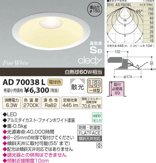 ¥³¥¤¥º¥ß¾ÈÌÀ KOIZUMI LED¹âµ¤Ì©¥À¥¦¥ó¥é¥¤¥È AD70038L