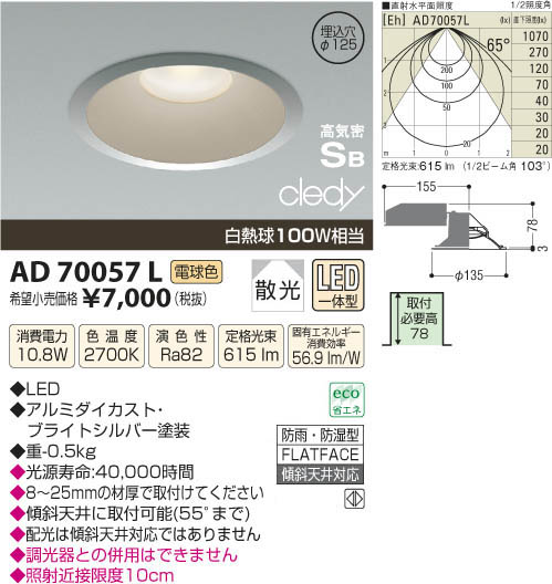 ¥³¥¤¥º¥ß¾ÈÌÀ KOIZUMI LED¹âµ¤Ì©¥À¥¦¥ó¥é¥¤¥È AD70057L