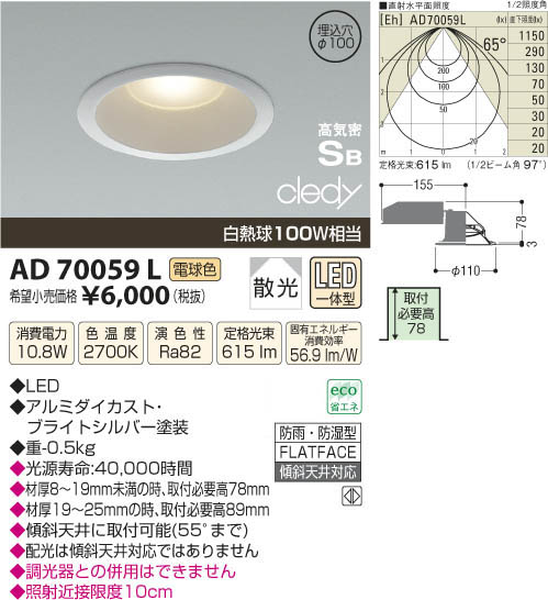 ¥³¥¤¥º¥ß¾ÈÌÀ KOIZUMI LED¹âµ¤Ì©¥À¥¦¥ó¥é¥¤¥È AD70059L