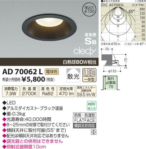 ¥³¥¤¥º¥ß¾ÈÌÀ KOIZUMI LED¹âµ¤Ì©¥À¥¦¥ó¥é¥¤¥È AD70062L
